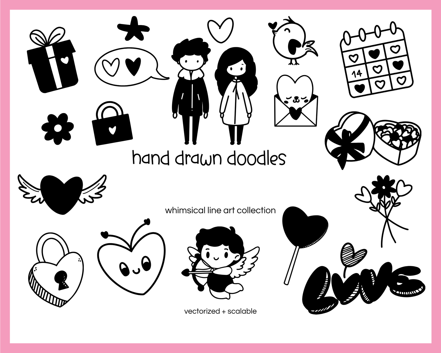 Ce sont des fichiers dessinés un à un à la main (sur Ipad) que les gens peuvent utiliser comme "clipart" pour décorer des documents.